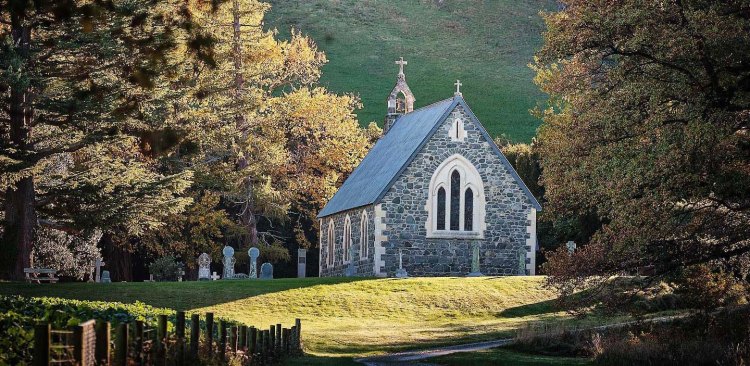 The Church of the Holy Innocents at Mount Peel Station was a gift to the community by John Barton Arundel Acland and consecrated by his father-in-law, Bishop Henry John Chitty Harper, 30 May 1869. The church is named in remembrance of three infant children who died between 1864 and 1869 and are buried in the churchyard cemetery. Badly damaged in the September 2010 earthquake, the church has been painstakingly restored and strengthened, and now stands as pristine as it was when first consecrated in the 1860s.